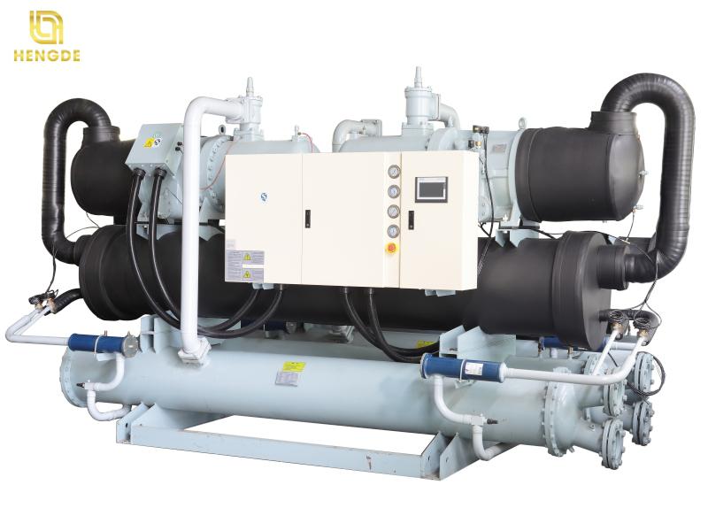 Semi-hermetic ScrewThe Hengde HC-720WD water cooled screw chiller has a refrigerating capacity of 240hp. It is often named a 700 kW water cooled chiller and a 200 ton water cooled chiller. This machine is equipped with two compressors. It is commonly utilized for cooling large production and processing devices. Especially in plastic processing industries such as injection and extrusion, it is widely applied. It can meet various process cooling needs and significantly boost the production efficiency and product quality of plastic molding machines.